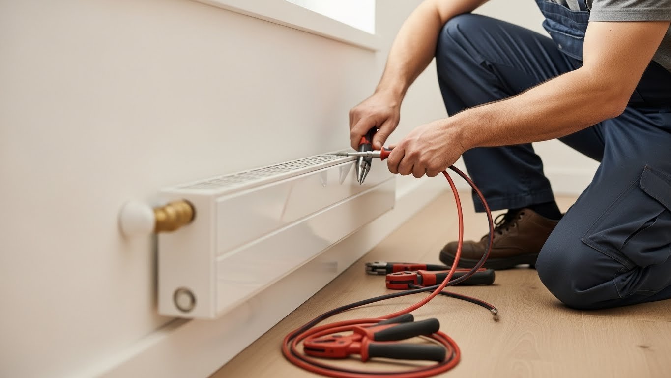 (Image suggestion: Close-up of a baseboard heater with technician tools nearby)